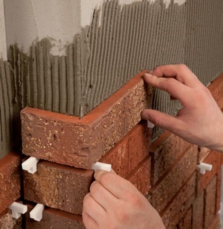 Четвертый этап. Для отделки плиткой, изготовленной из обожженной глины, рекомендуем использовать «терракот». Его можно использовать также для отделки каминов. Особое внимание следует обратить на укладку первого ряда. Если применить подкладку в виде листов ГВЛ, а также начать работу с угла тепловой конструкции, то получить идеальный ряд будет гораздо проще.