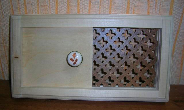 • Вырезаем из липы или ольхи задвижку и после ее шлифовки прикрепляем ручку. Оптимальная толщина массива составляет 5-7 мм.